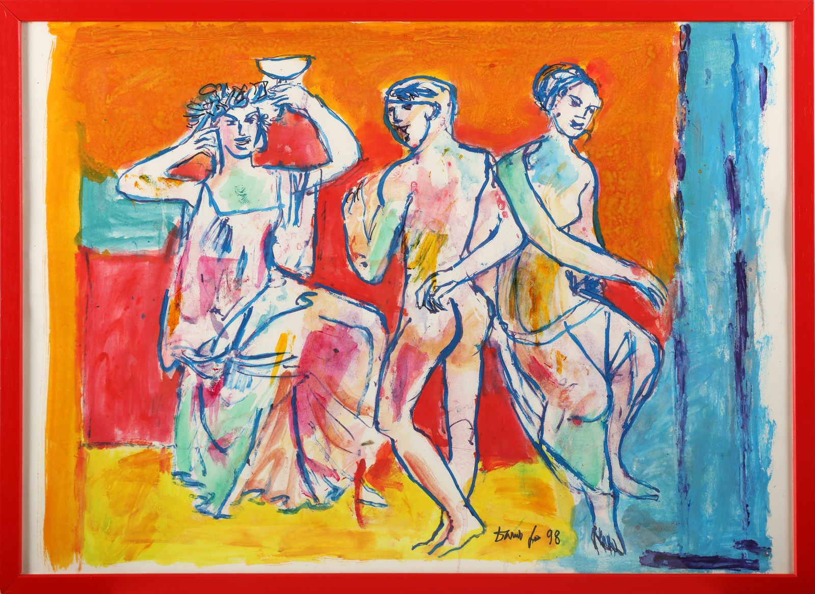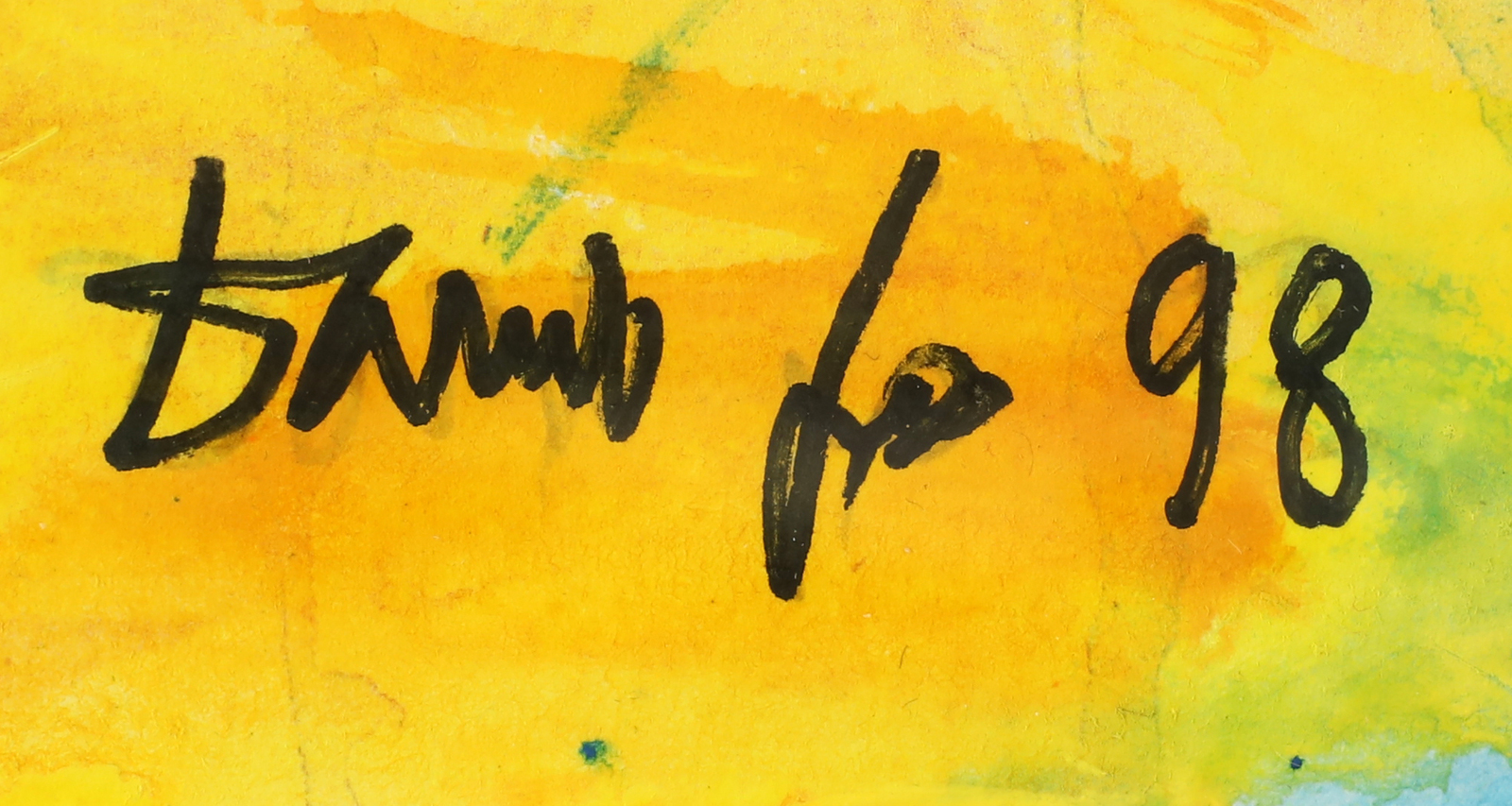 FO DARIO (1926 - 2016) Senza titolo. 1998. Tecnica mista su carta. Cm 70,00 x 50,00. Firma e anno in basso a destra. Opera inserita nell'archivio digitale Franca Rame Dario Fo, nella sezione: Disegni, bozzetti e dipinti non collegati a opere particolari.