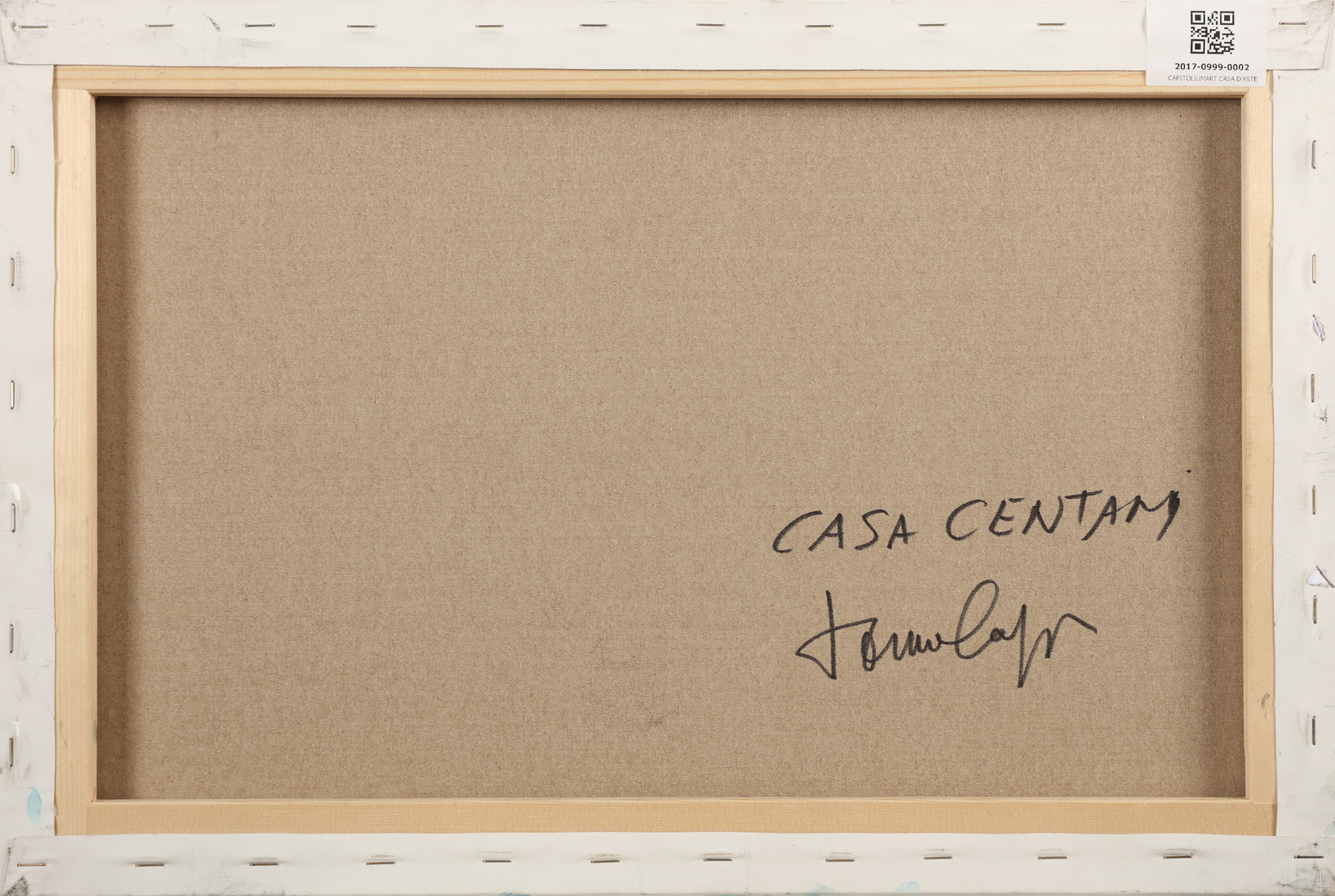CAPUTO ANTONIO (n. 1933) Casa Centani. Tecnica mista su tela. Cm 60,00 x 40,00. Firma in basso a sinistra. Al retro titolo e firma. Autentica dell'artista su fotografia.