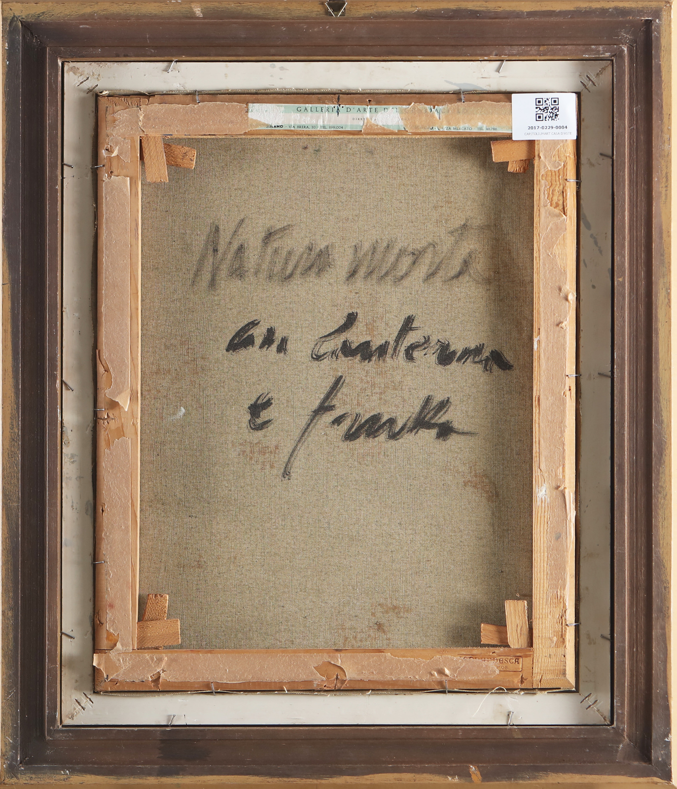 PURIFICATO DOMENICO (1915 - 1984) Still life with lantern and fruit. Oil on canvas . Cm 40,00 x 50,00. Signature on the right top. At the back title.. Cornice presente