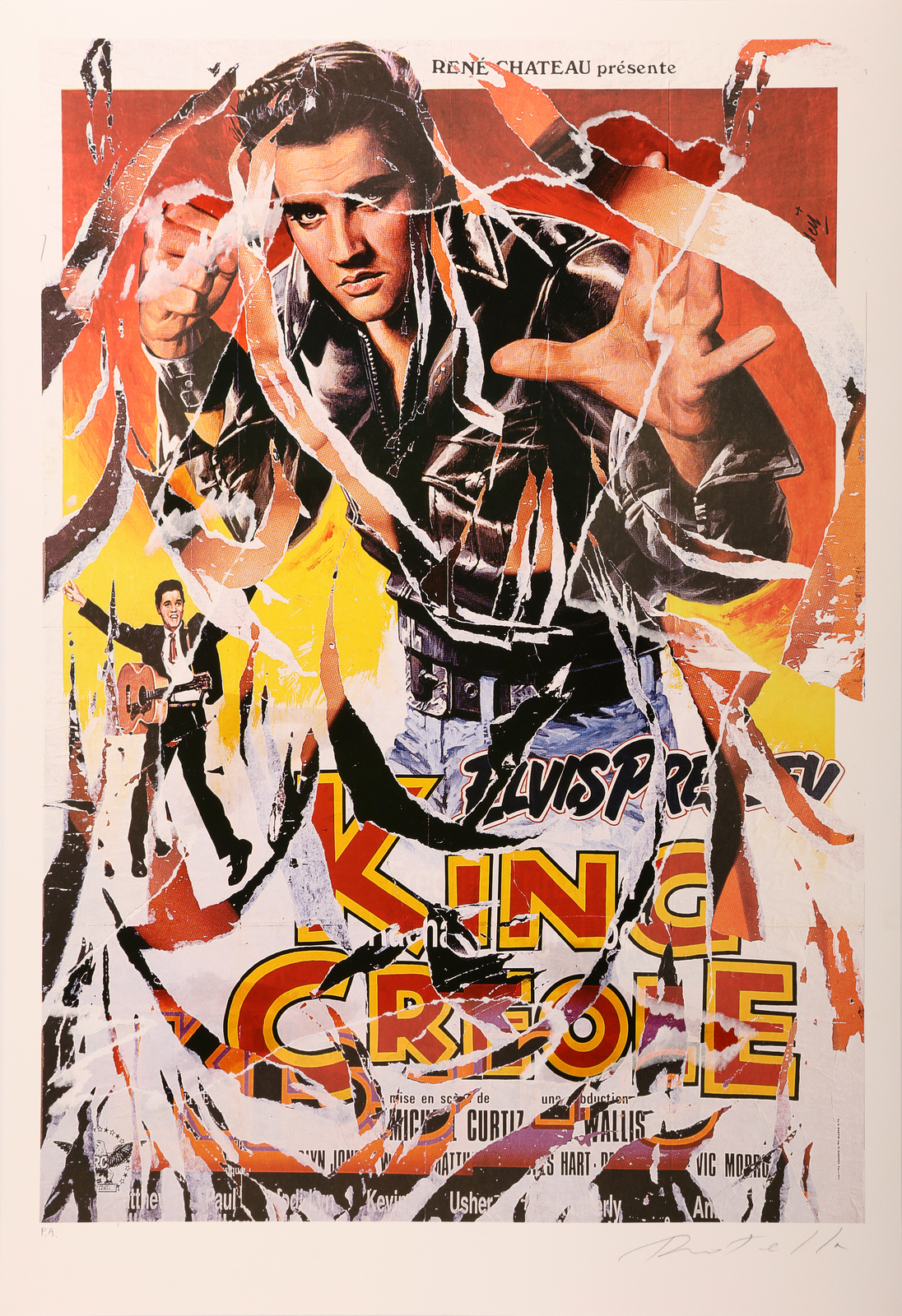 ROTELLA MIMMO (1918 - 2006) King Creole. Litho-decollage. Cm 70,00 x 100,00. P.a. Edition and signature lower in pencil. Mimmo Rotella Foundation, Milan stamp lower left. Publication: Mimmo Rotella - multiplés decollages by Elena Pontiggia, SilvanaEditioriale, 2005, p. 114 - 115.