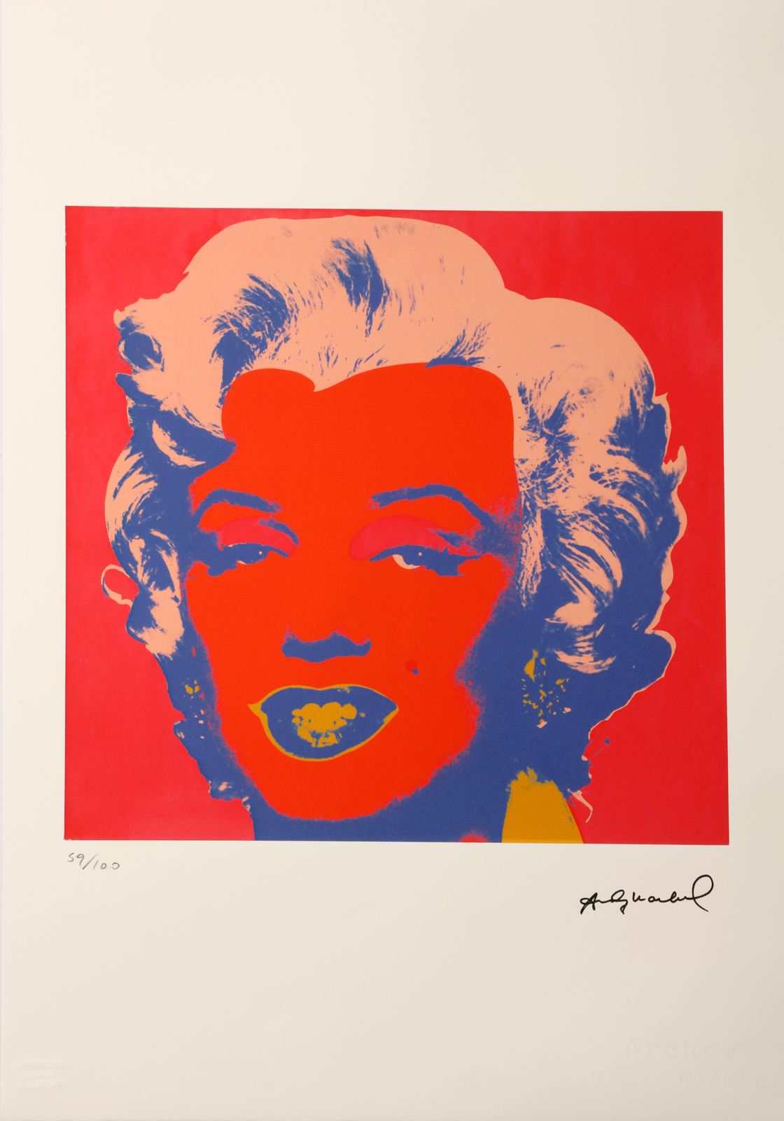 2. Marilyn Monroe, 59/100, tiratura a matita in basso a sinistra e firma a stampa in basso a destra; carta Arches France, timbro a secco editore George Israel Paris, Al retro timbro Leo Castelli, New York e Art Gallery, New York.