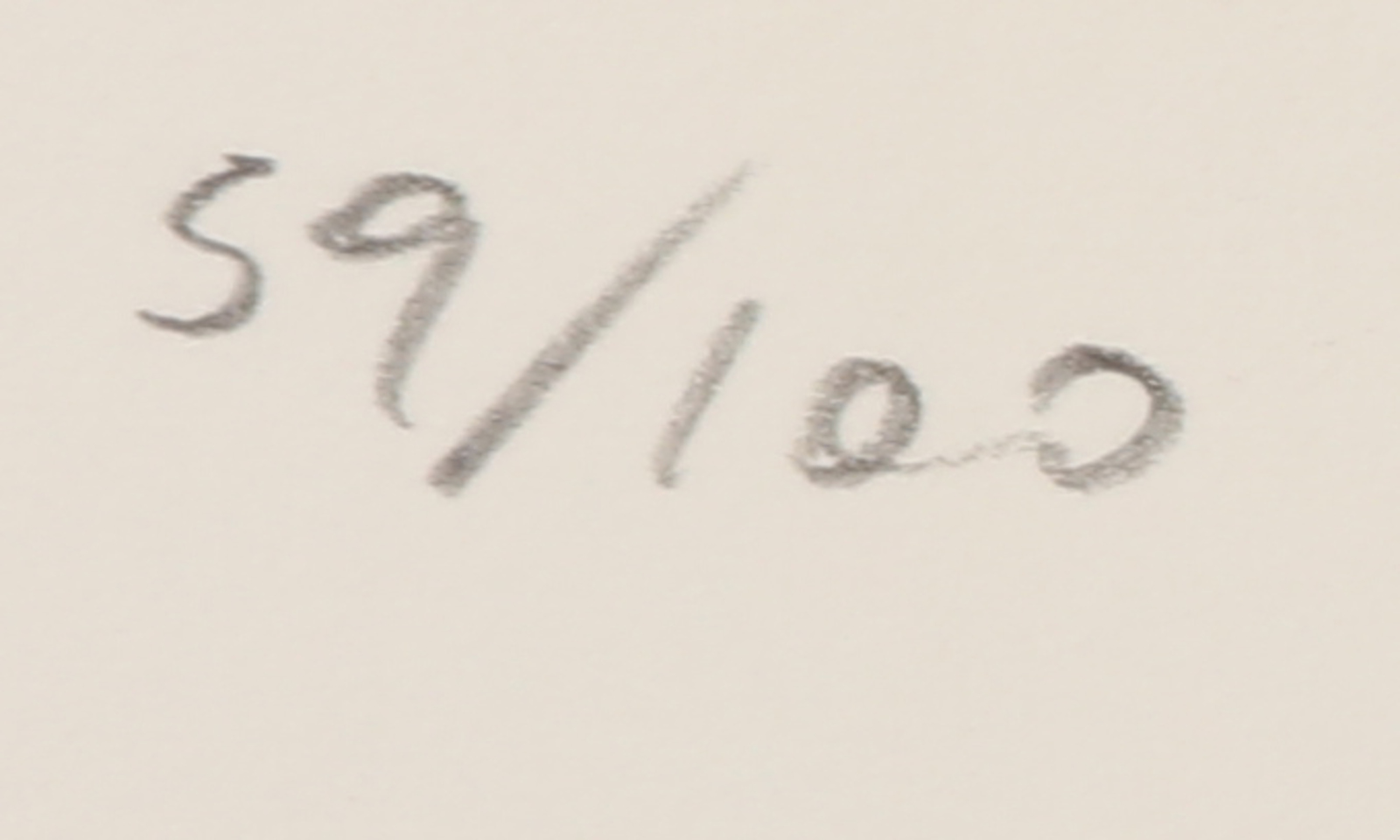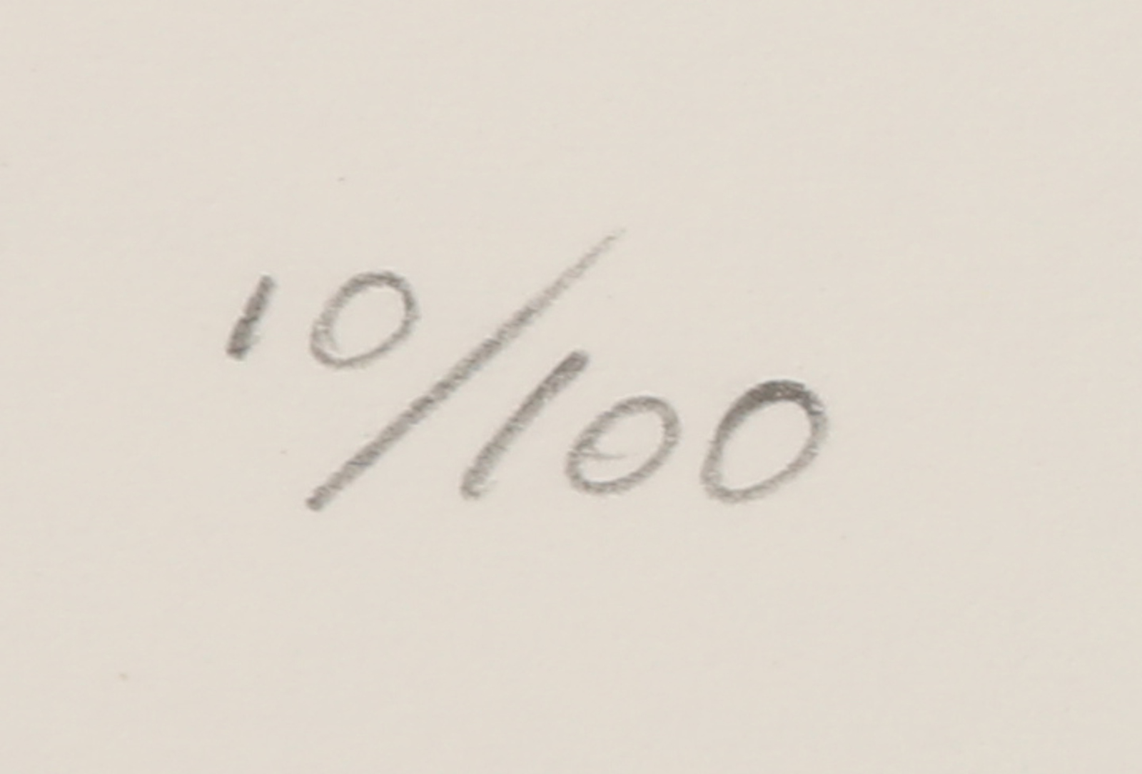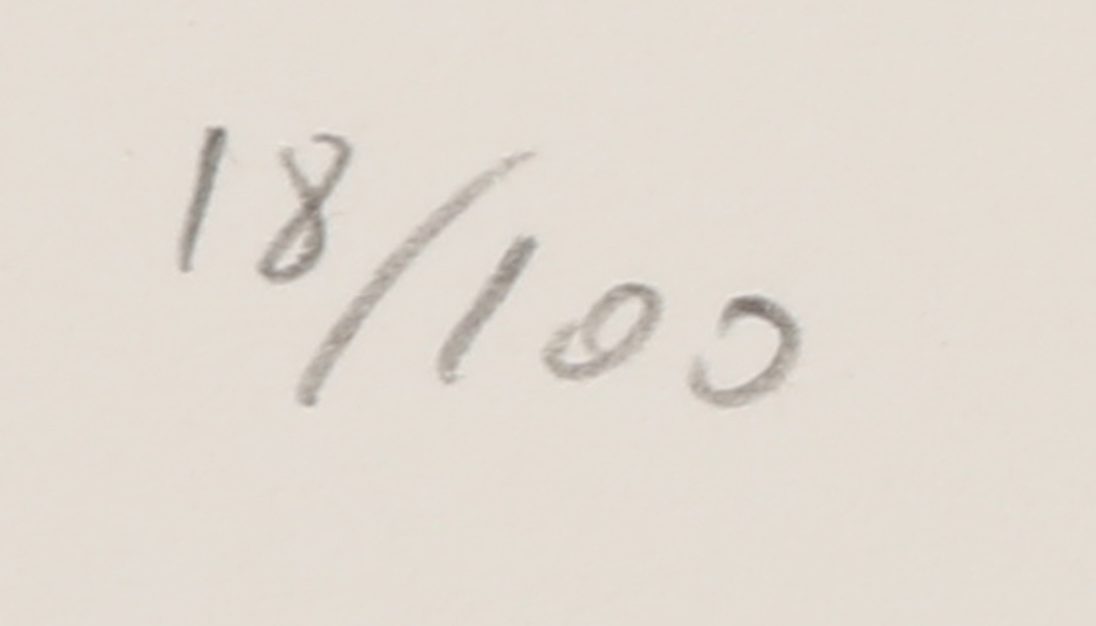 3. One $, 10/100, edition lower left in pencil and signature lower right in print, Arches France paper, George Israel Paris stamp, at the back Leo Castelli, NY and Art Gallery, NY stamps.