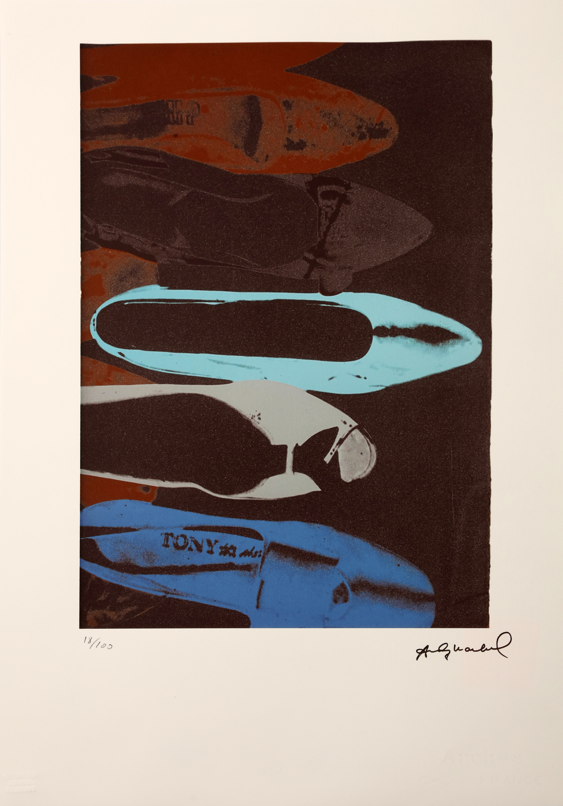 4. Shoes, 18/100, tiratura a matita in basso a sinistra e firma a stampa in basso a destra;carta Arches France, timbro a secco editore George Israel Paris, Al retro timbro Leo Castelli, New York e Art Gallery, New York.