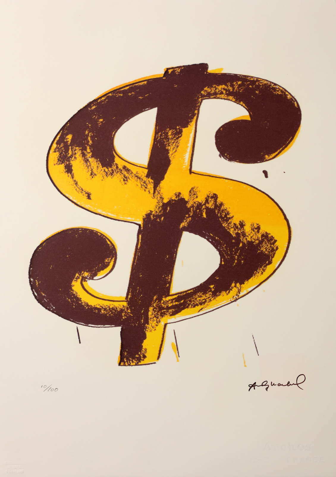 3. One $, 10/100, tiratura a matita in basso a sinistra e firma a stampa in basso a destra;carta Arches France, timbro a secco editore George Israel Paris, Al retro timbro Leo Castelli, New York e Art Gallery, New York.