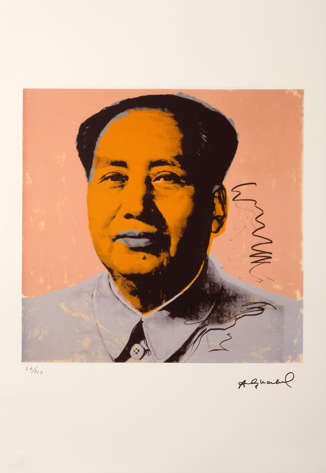 WARHOL ANDY (1928 - 1987) Lotto composta da n. 4 fogli. Litografie. Cm 37,00 x 57,00. 1.Mao, 26/100, tiratura a matita in basso a sinistra e firma a stampa in basso a destra; carta Arches France, timbro a secco editore George Israel Paris, al retro timbro Leo Castelli, New York e Art Gallery, New York.
