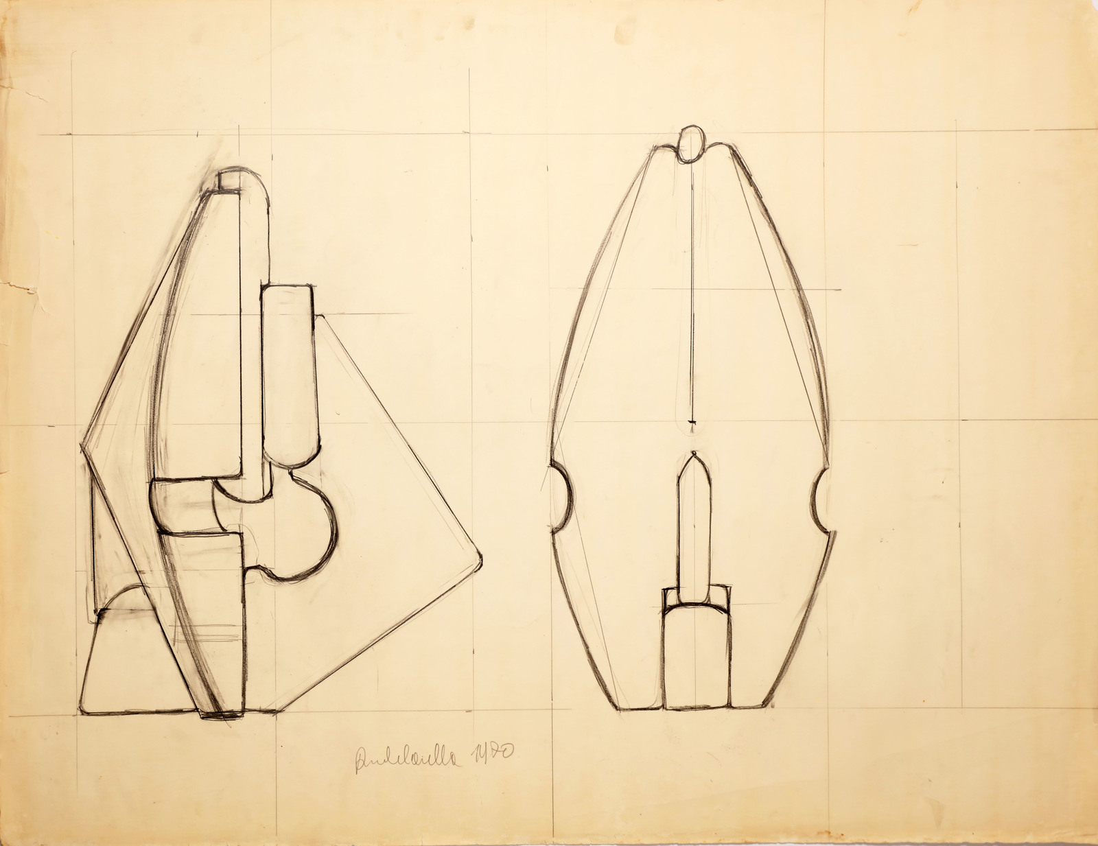 CASCELLA ANDREA (1920 - 1990) Senza titolo. Tecnica mista su carta. Cm 100,00 x 70,00. Firma e anno a matita in basso a sinistra.