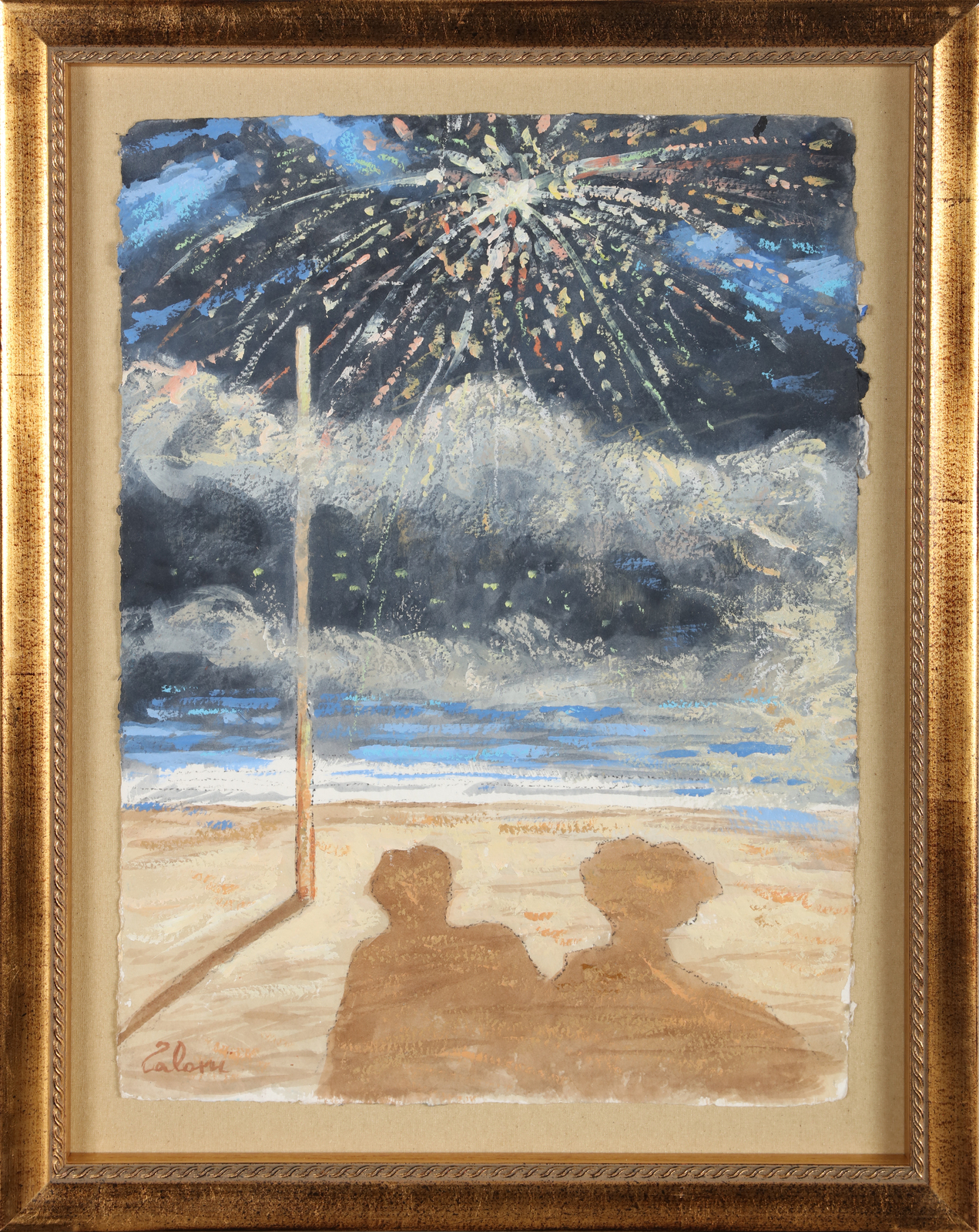 TALANI GIAMPAOLO (n. 1955) Notte di Ferragosto. 2014. Tecnica mista su cartoncino. Cm 35,00 x 50,00. Firma in basso a sinistra. Autentica dell'artista su fotografia. Pubblicazioni: Giampaolo Talani - Il Talani di carta a cura di Flaminio Gualdoni e Simona Clementoni, Piazza Dante Edizioni, 2016, pag. 69. Cornice presente