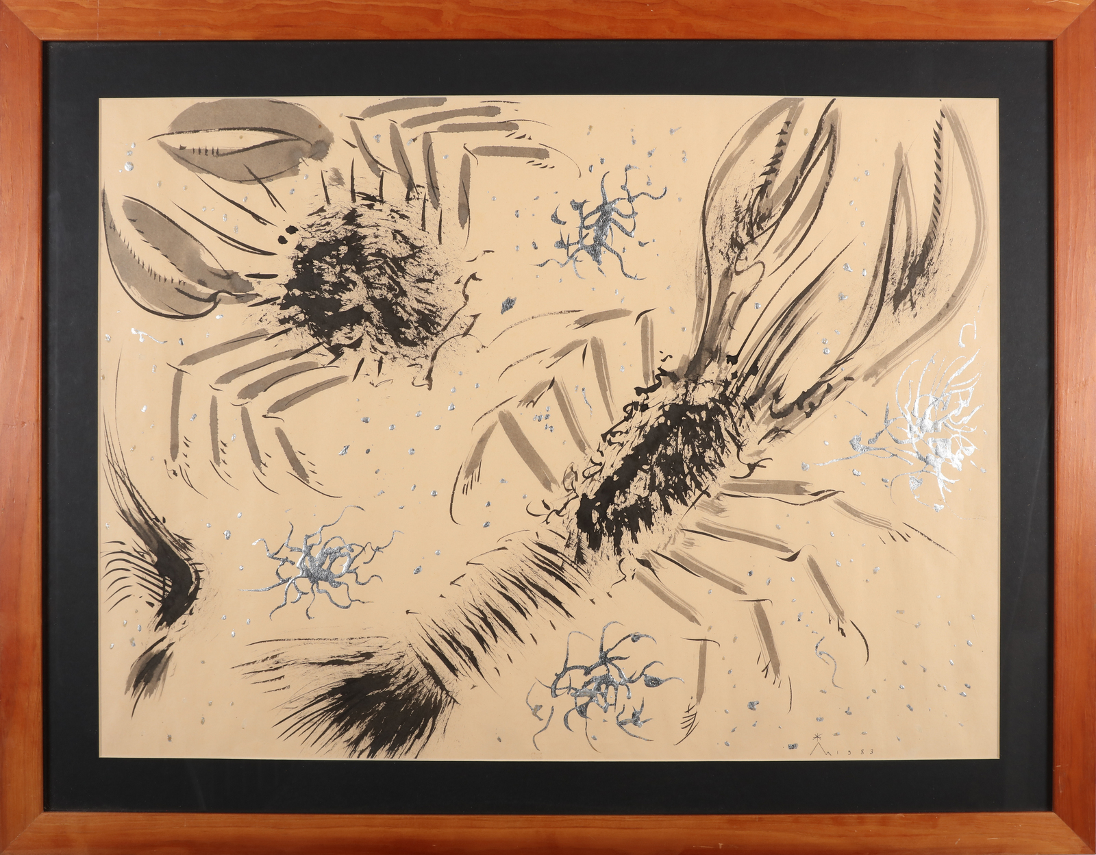 MERLINO SILVIO (n. 1952) Senza titolo. 1983. Tecnica mista su carta. Cm 74,00 x 58,00. Firma e anno in basso a destra. Cornice presente
