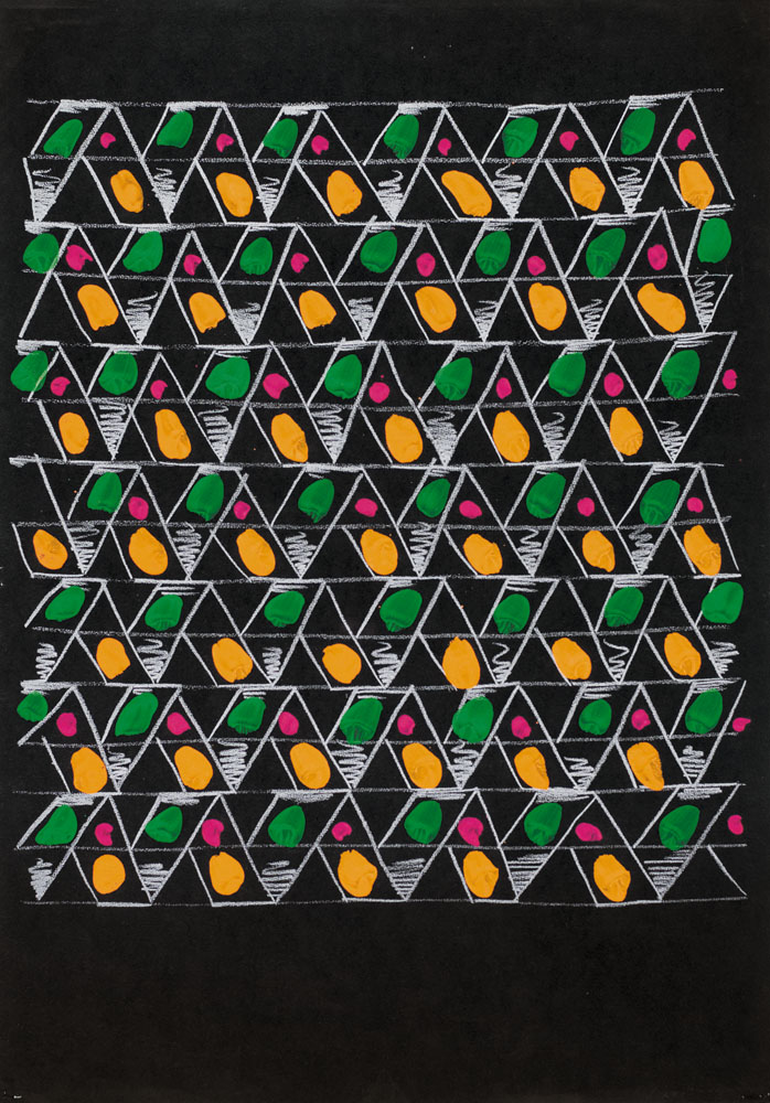 CARLA ACCARDI Trapani 09/10/1924 Senza titolo, 1974 litografia con intervento pittorico manuale dell'artista su cartoncino nero cm. 70,7x49,7; firma e anno in basso a destra, dichiarazione d'autenticità e archivio dell'artista su foto.
