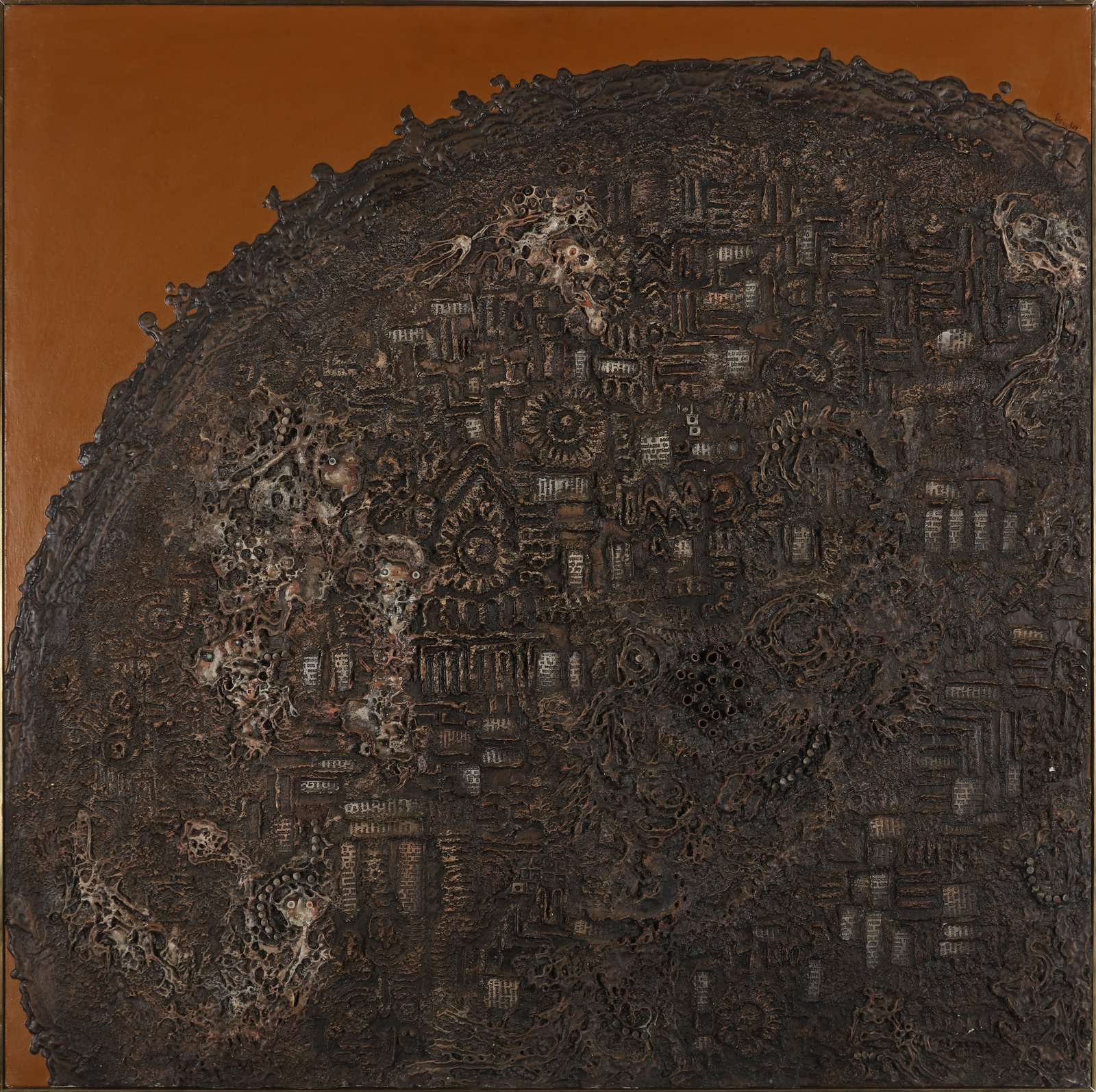 PERICOLI TULLIO (1936 - 2006) Untitled. 1970. Mixed media on canvas on board. Cm 70,00 x 70,00. At the back signature and Borgogna Art Gallery, Milan label with stamp. Provenance: Borgogna Art Gallery, Milan; Private collection, Milan; Pandolfini Auction House, Florence, lot 248, 15 August 2009.