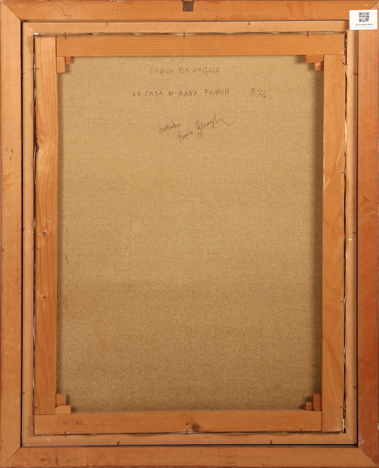 BENAGLIA ENRICO (n. 1938) Anna Frank's home. 1974. Mixed media on canvas. Cm 60,00 x 80,00. Signature and year lower left. At the back title, signature and year. Cornice presente