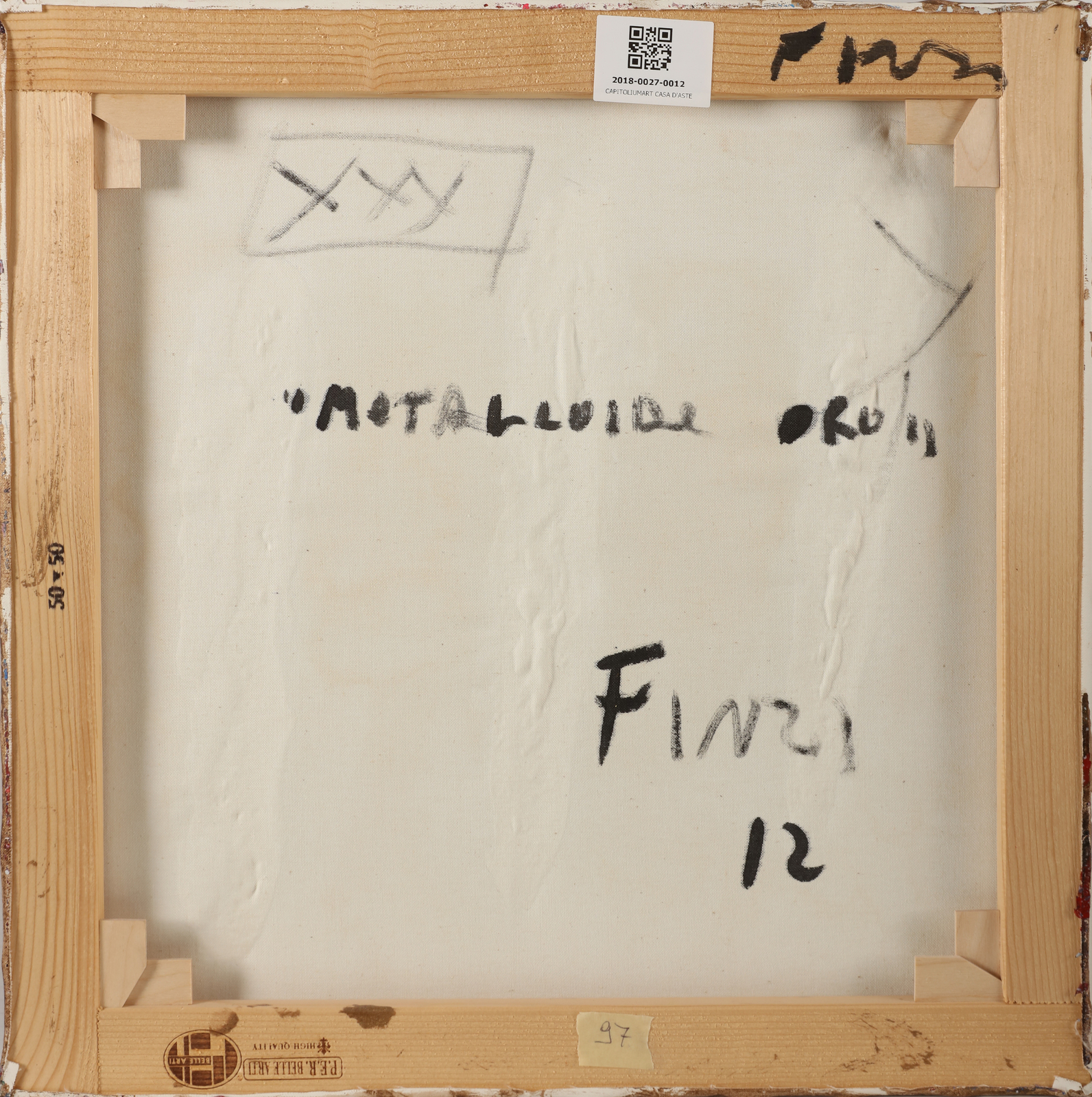 FINZI ENNIO (n. 1931) Metalloide oro. 2012. Tecnica mista su tela. Cm 50,00 x 50,00. Al retro titolo, firma e anno.