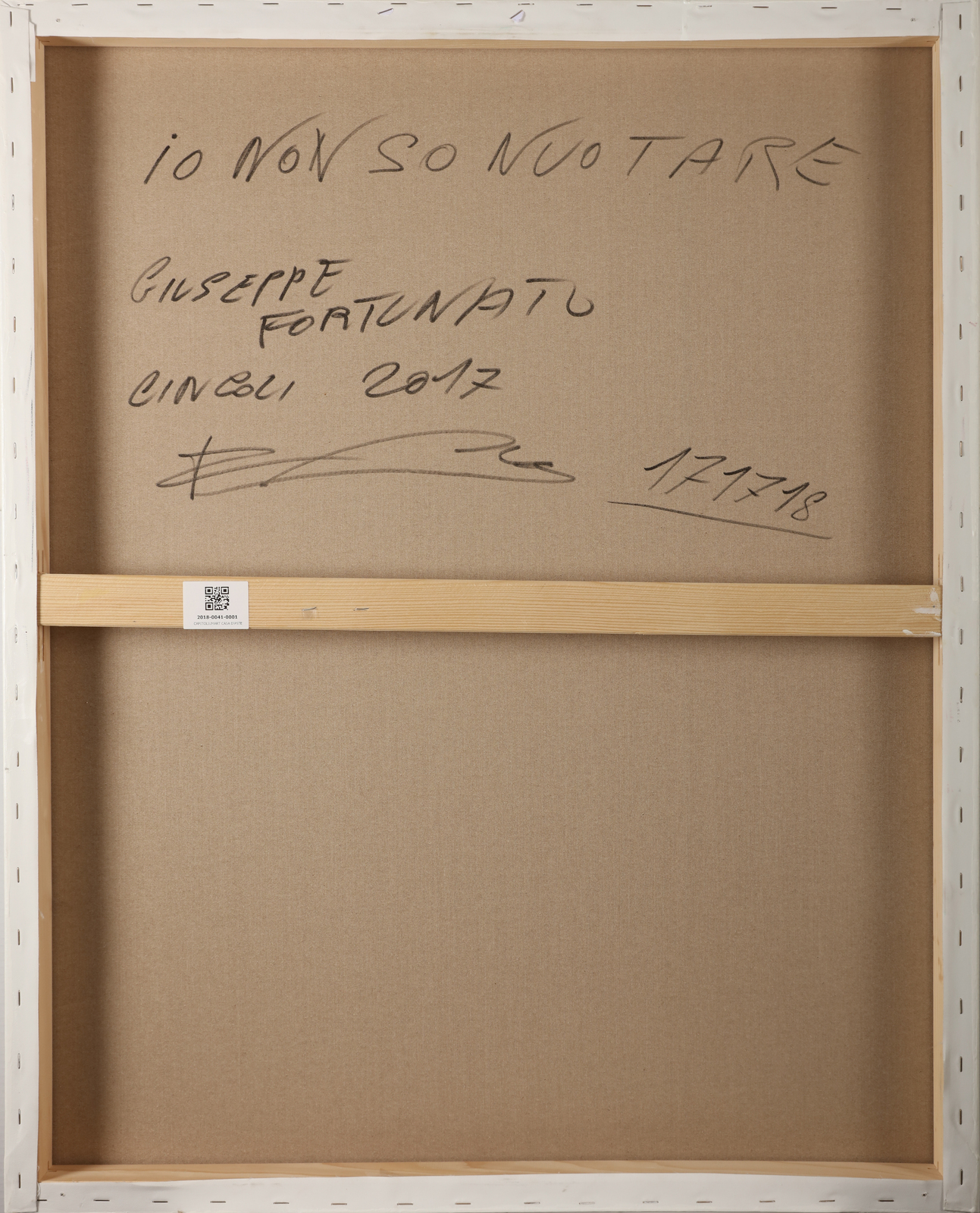 FORTUNATO GIUSEPPE (n. 1956) Io non so nuotare. 2017. Acrilico su tela. Cm 80,00 x 100,00. Al retro titolo, firma e anno. Opera archiviata presso l'Archivio Giuseppe Fortunato, come da documentazione fotografica allegata all'opera riportante il relativo numero di inventario.