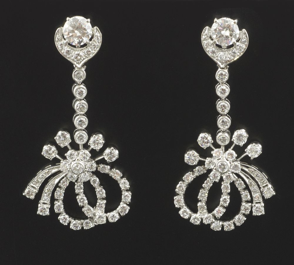 Lotto 50 | Orecchini pendenti in oro bianco completamente ricoperti da diamanti taglio...