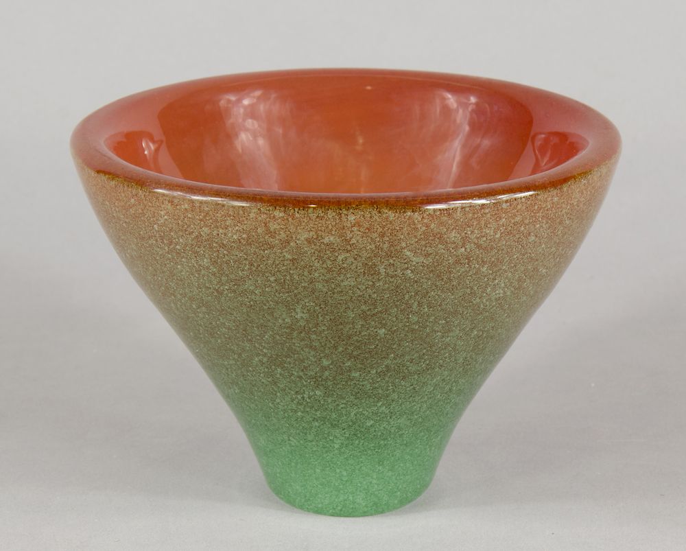 Venini: vasetto in vetro "pulegoso" a 2 colori, disegno di Scarpa. Firmato...
