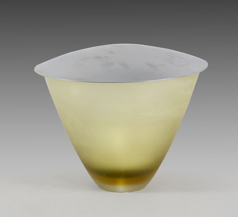 Venini: lampada da tavolo in vetro a 2 colori con coperchio cromato....