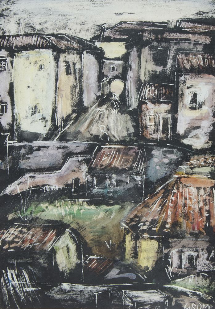 Lotto 109 | Bogdan Grom 1918-2013 "Case" cm. 70x50 - tecnica mista Firmato b. a d.