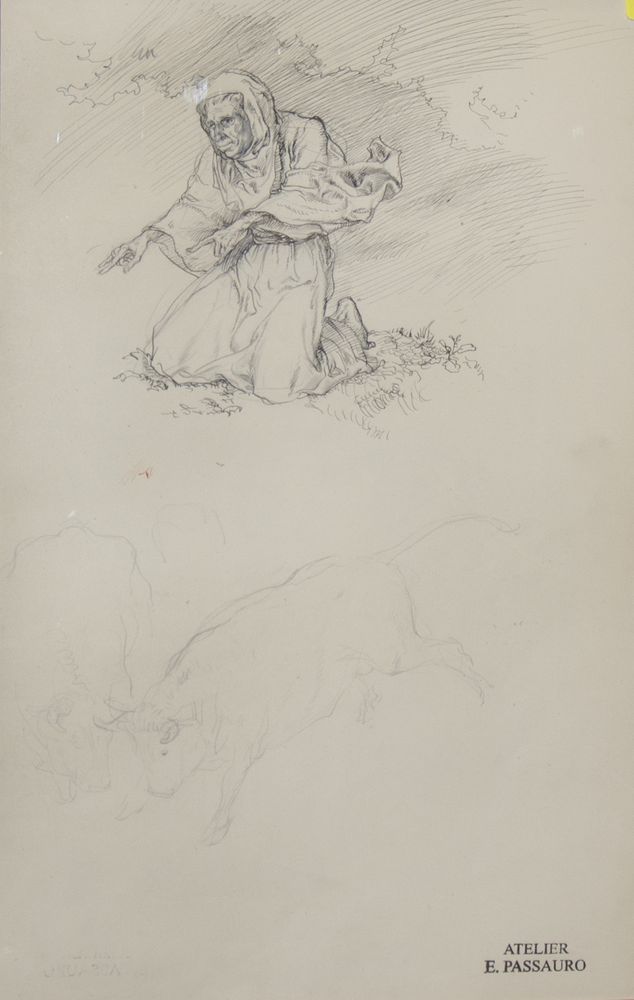 Edmondo Passauro Disegno incorniciato, reca il timbro Atelier E. Passauro.