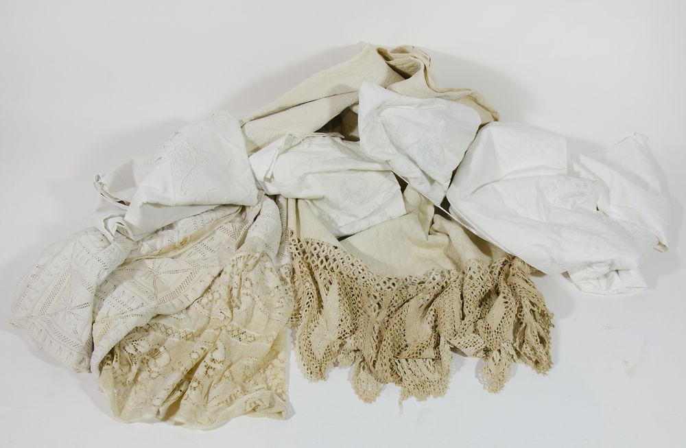 Lotto composto da copriletto matrimoniale e singolo, lenzuola matrimoniali e federe.