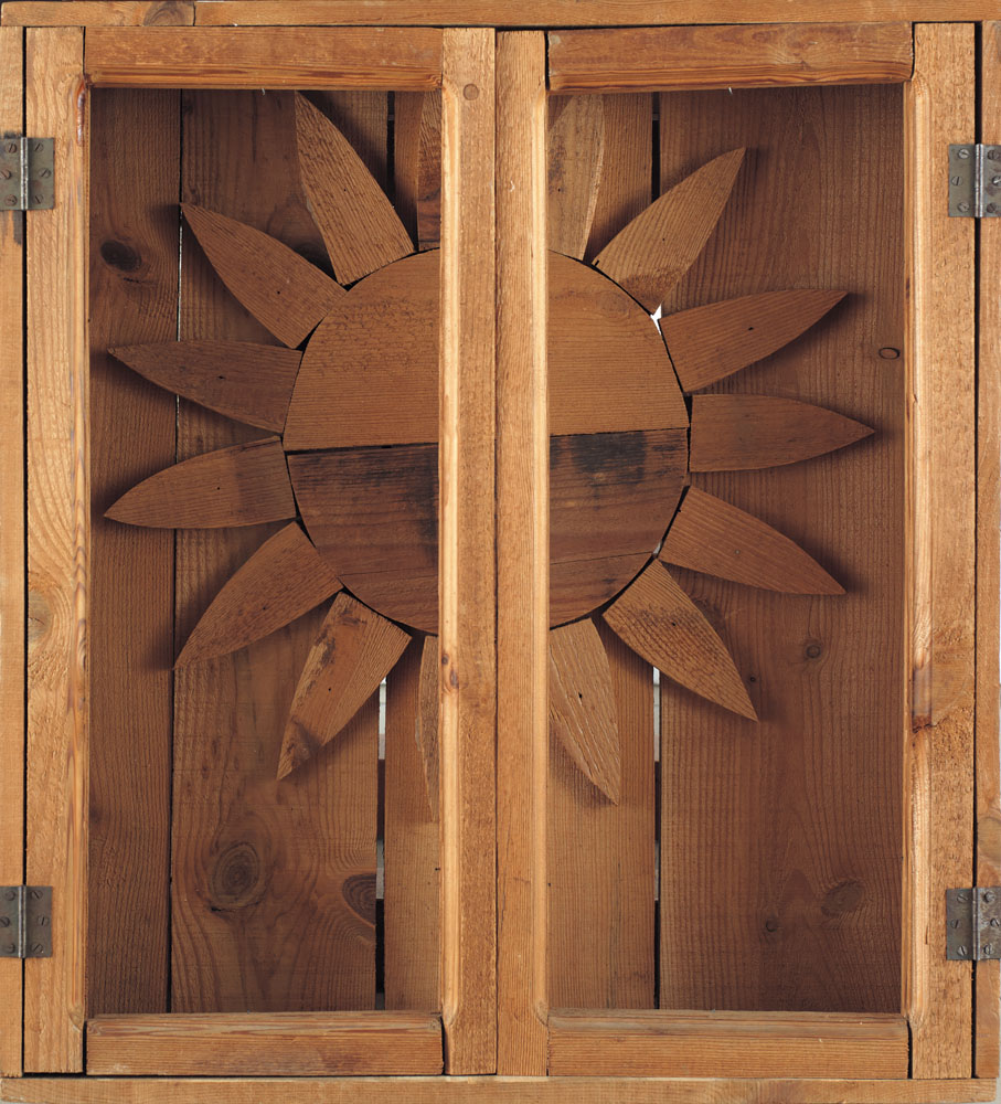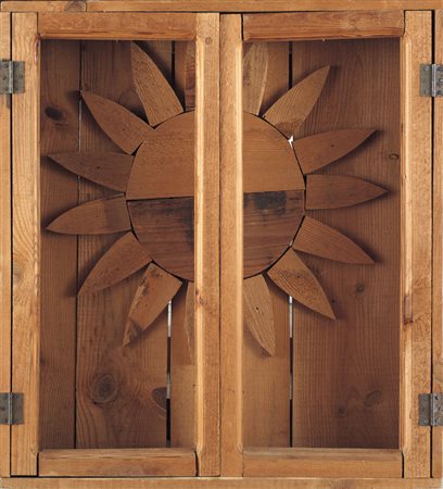 MARIO CEROLI Castelfrentano 1938 - Il sole alla finestra, 1971, multiplo in legno di pino di Russia cm. 79,5x71x15, prova d'artista, firma e anno sul lato destro, dichiarazione d'autenticità dell'artista su due foto.
