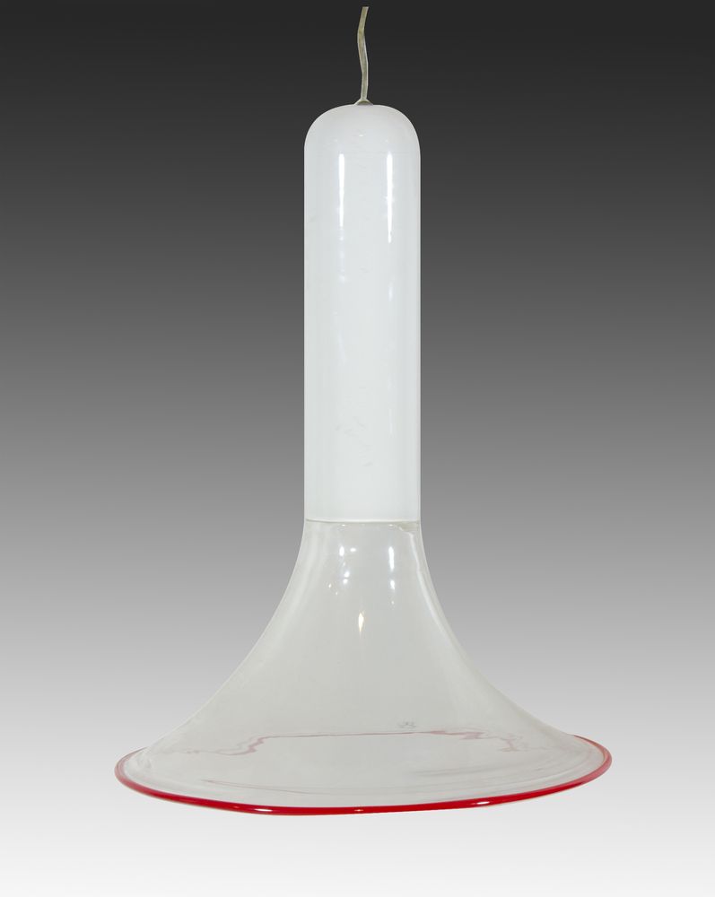 Leucos: lampada da soffitto in vetro con bordo rosso. Con etichetta originale.
