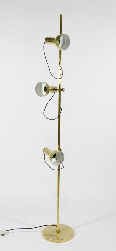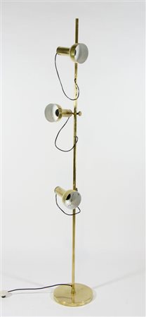 Lampada a stelo in ottone con 3 luci. Anni '70. H. cm. 170.
