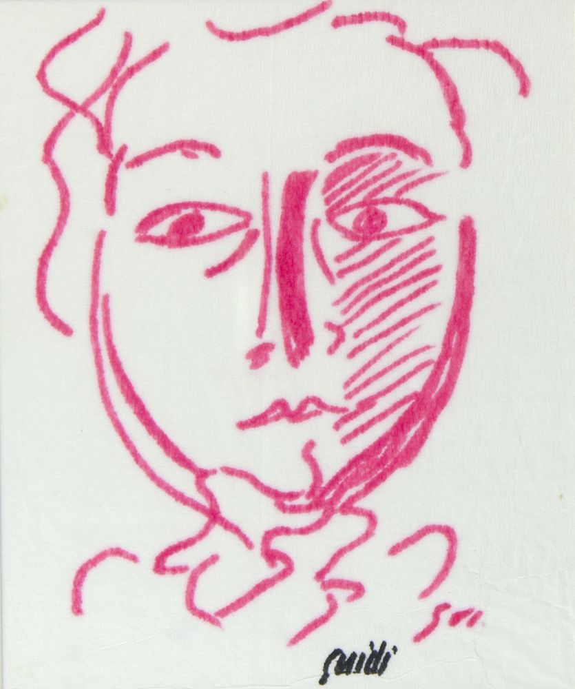 Virgilio Guidi Roma 1891-Venezia 1984 "Volto" cm. 28x23 - pennarello rosso su carta Firmato b. a d.