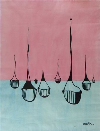 Giorgio Gallottini Gorizia 1932 "Gondole" cm. 62x48 - tempera su carta Firmato b. a d. e datato '55.