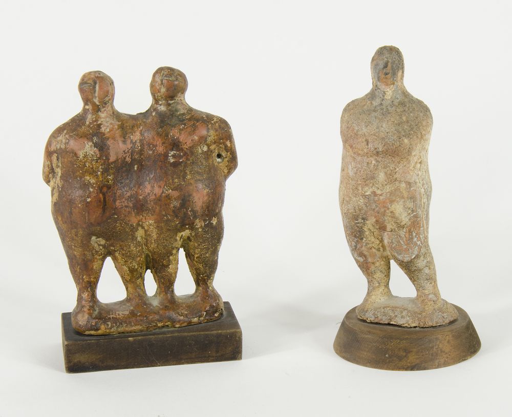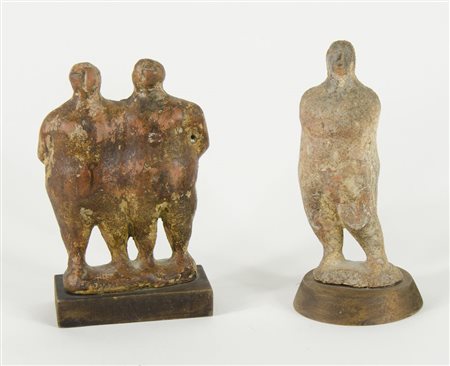 Oreste Dequel Capodistria 1923-Roma 1985 Lotto di 2 sculture in terracotta raffiguranti personaggi, basi in legno. H. max cm. 20.