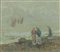 Giuseppe Sacheri 1863-1950 "Barche in lontananza" cm. 23x28 - olio su cartone Firmato b. a d.