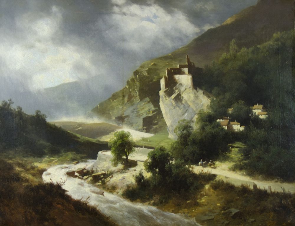 Leopold Heinrich Voscher 1830-1877 "Paesaggio alpino" cm. 63x83 - olio su tela Firmato b. a s.