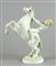 Hutschenreuter: scultura in porcellana policroma raffigurante figura a cavallo. Marcato sotto la base. H. cm. 32. (lieve rottura).
