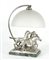 Lampada da tavolo in argento rinforzato con figure di cavalli e paralume in...