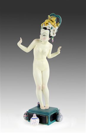 Lenci: scultura in ceramica policroma modello Liu-Tu. Disegno di H. Konig...