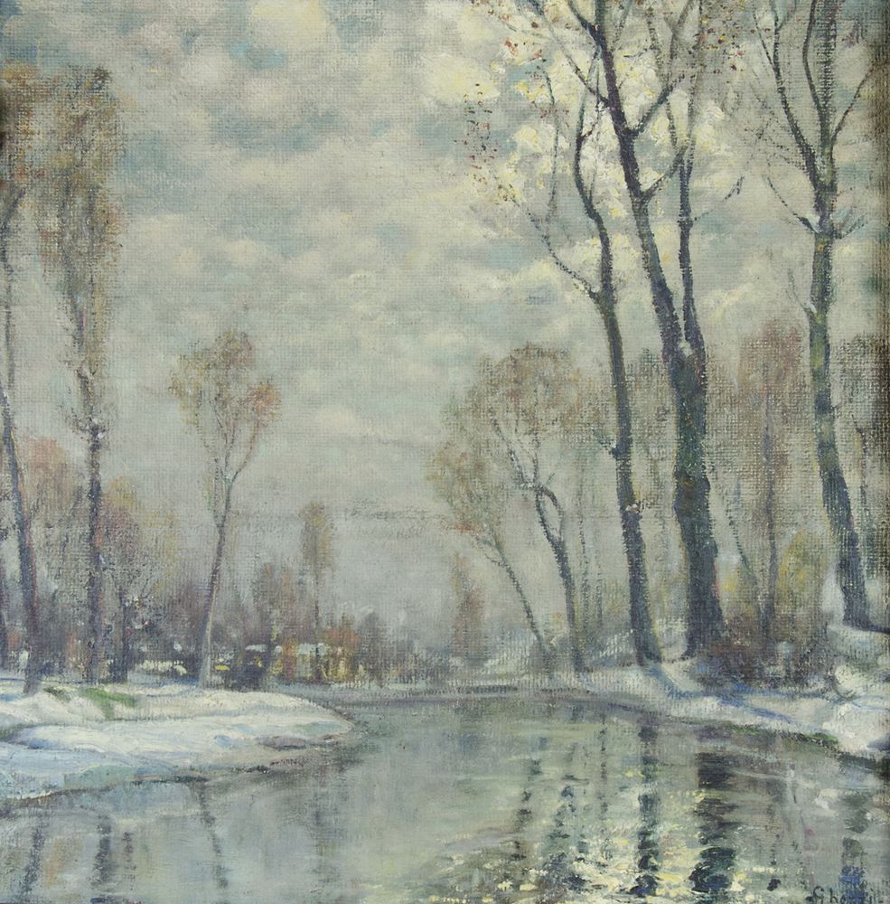 Pittore primi '900 "Paesaggio invernale" cm. 60x60 - olio su tela Firmato b. a d.
