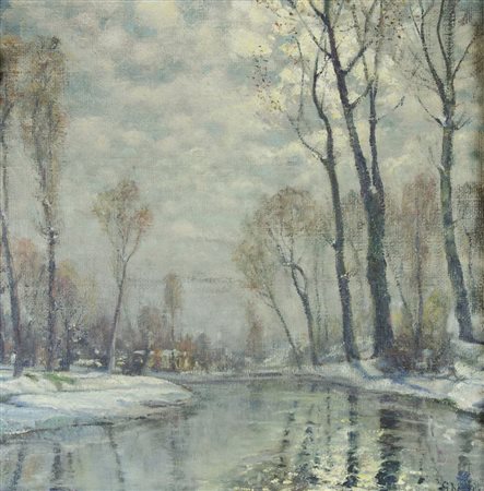Pittore primi '900 "Paesaggio invernale" cm. 60x60 - olio su tela Firmato b....