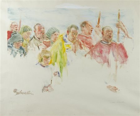 Tullio Silvestri Venezia 1880-Trieste 1963 "Processione" cm. 60x75 - monotipo...