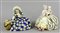 Lotto di 2 sculture in ceramica policroma raffiguranti gentildonna e mamma con bambino. Anni '30. H. cm. 22. (mancanze).