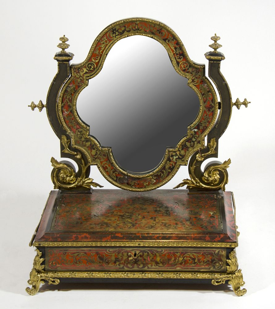 Toilette da tavolo a lavorazione boulle con spechcio basculante e cassetto...