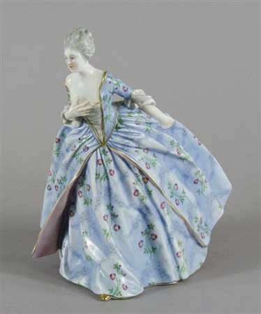 Ginori: scultura in porcellana policroma raffigurante gentildonna. Marcata sotto la base. H. cm. 24.