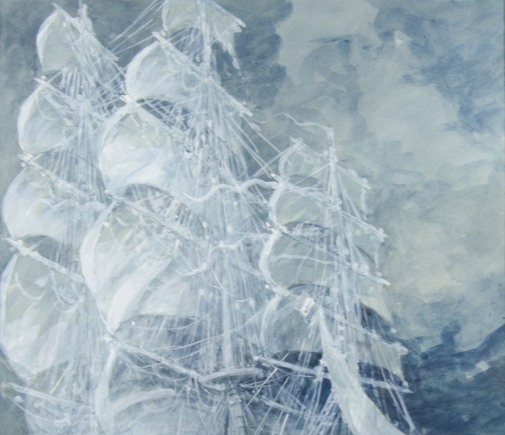 Rodolfo Claudus 1893-1964 "Veliero fantasma" cm. 30x34 - tempera su carta Firmato b. a s.