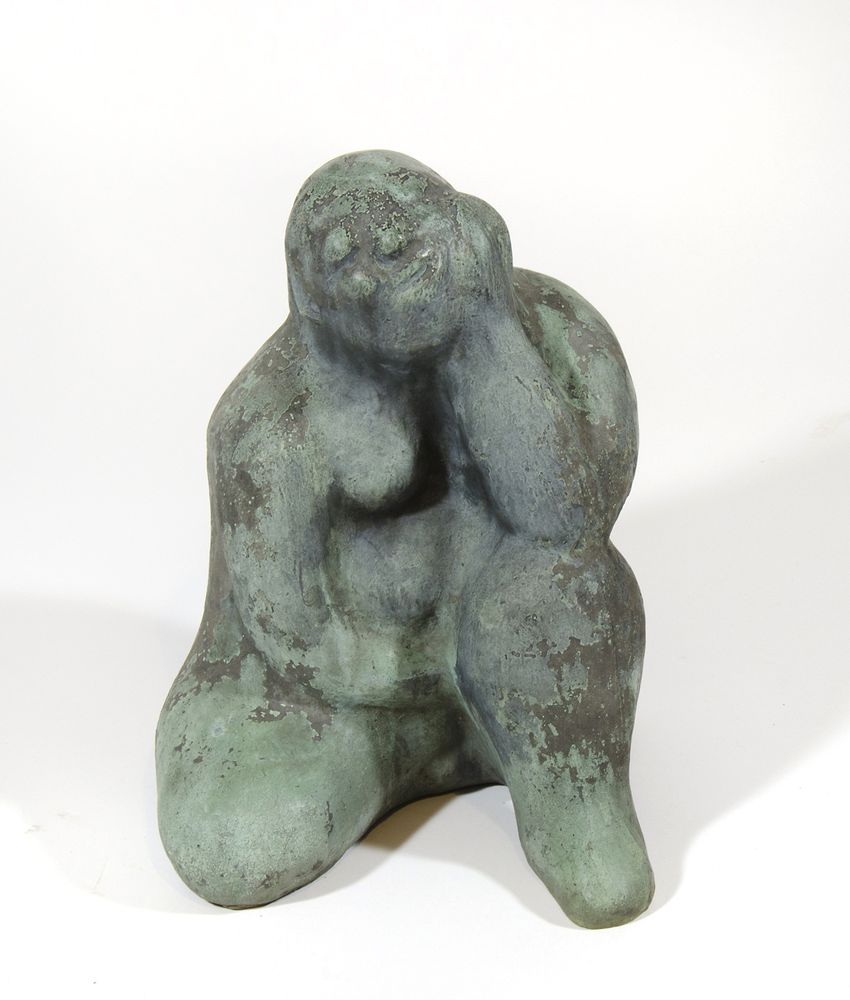 Ossi Czinner 1925-2014 "Bagnante seduta" h. cm. 41 - scultura in bronzo a patina verde Firma sul fianco