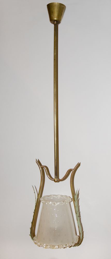 Lampada a soffitto con struttura in metallo e campana in vetro. H. cm. 89.