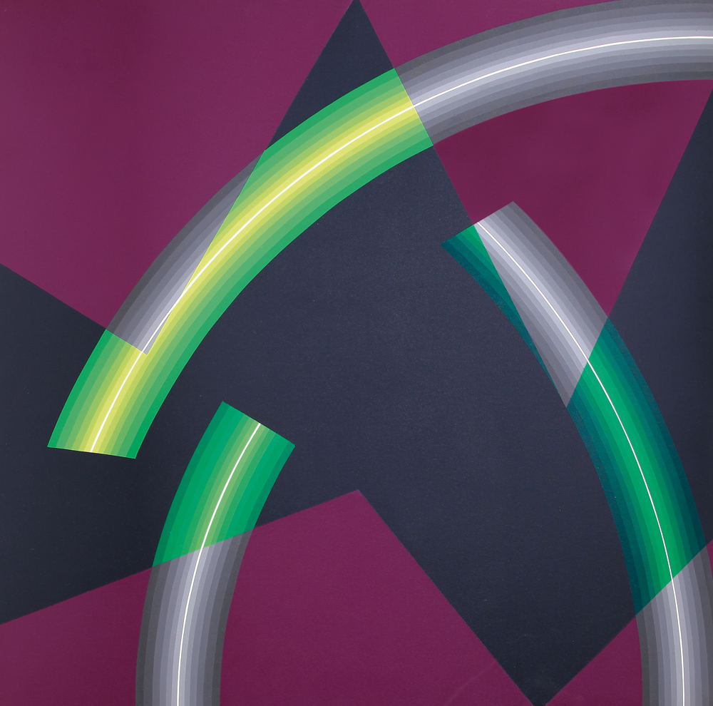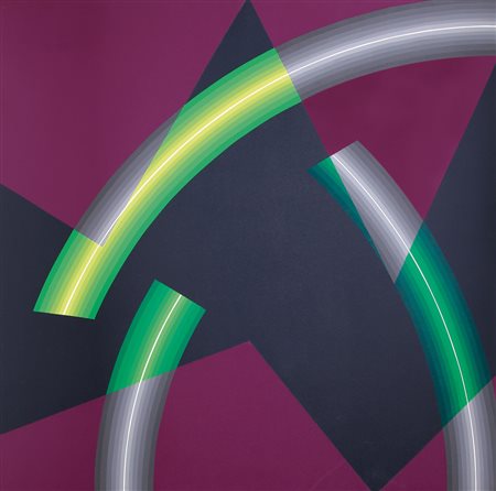 HORACIO GARCIA ROSSI Buenos Aires (Argentina) 1929 Couleur Lumiere Khaos Trasparence, 2007 acrilico su tela cm. 80x80, firma, titolo, anno, località (Paris) e dedica ad personam al retro, dichiarazione d'autenticità dello Studio G.R. (Sacile - PN) su foto, pubblicata sul catalogo della mostra "Il cinetismo sub-cisalpino, arte programmata ieri e oggi", Officine H (Ivrea - TO) a cura di Giovanni Granzotto, edizioni Verso l'Arte, tenutasi dal 14 settembre al 4 novembre 2007, in copertina ed a pagina 70, opera senza cornice.