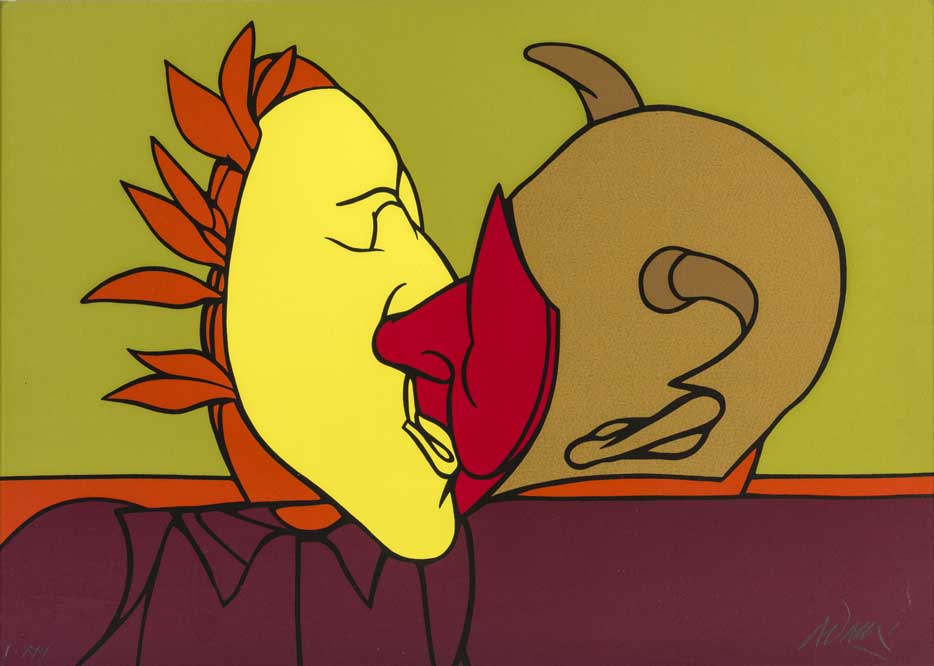 VALERIO ADAMI (1935) Il bacio Serigrafia, es. I/XXX 34,5 x 49,5 cm Firmata a...