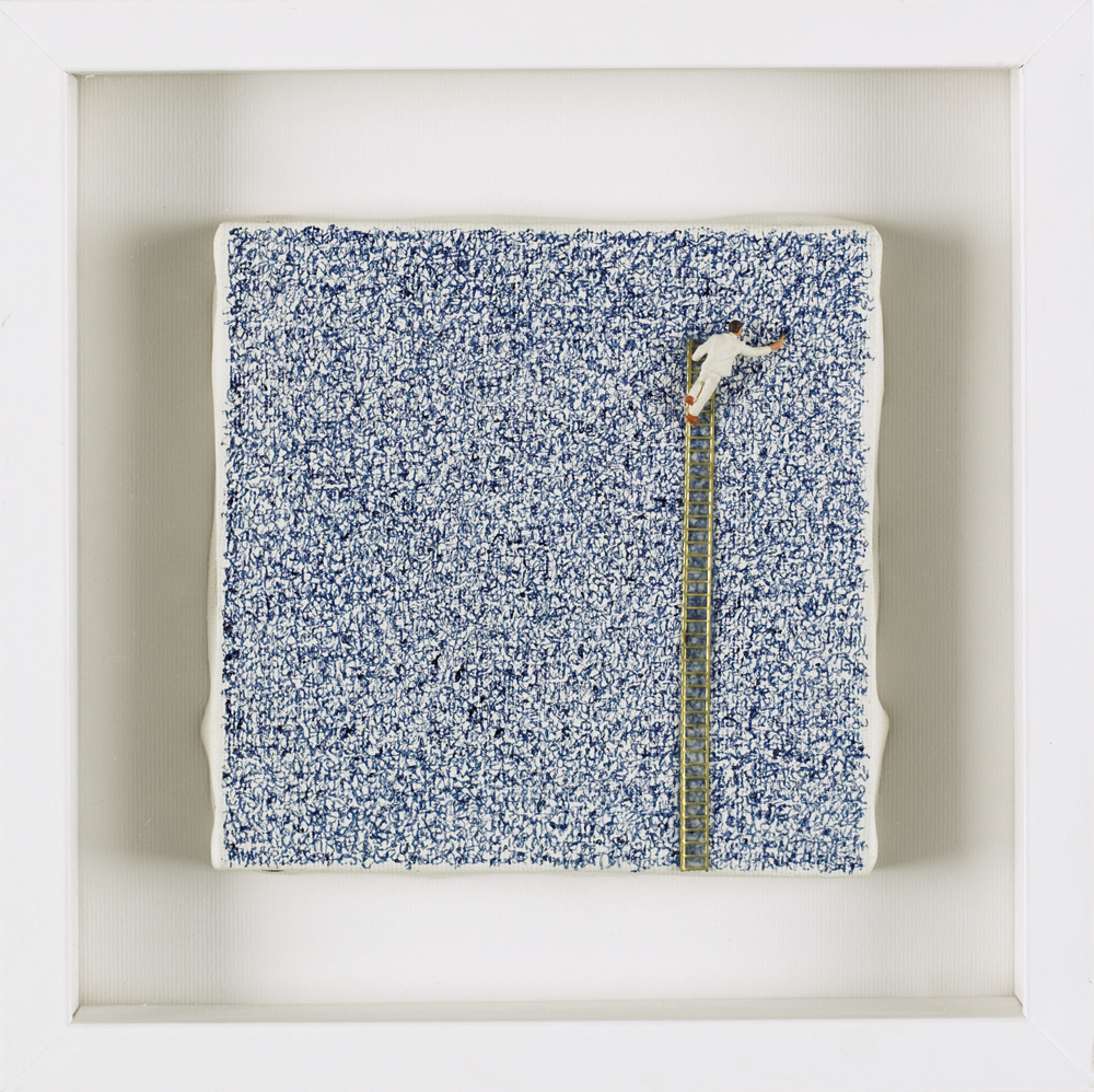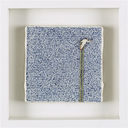 FRANCESCO DE MOLFETTA Milano 1979 - Elucubrazioni mentali, 2004, tecnica mista e applicazioni su tela cm. 12x12, firma e anno al retro, dichiarazione d'autenticità dell'artista su foto.