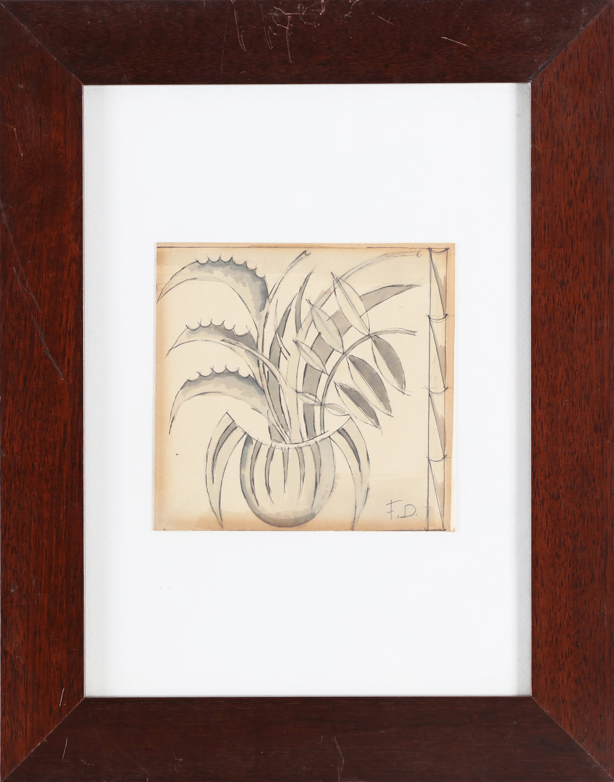 DEPERO FORTUNATO (1892 - 1960) Senza titolo. mista su carta. Cm 13,00 x 13,00. Firma monogrammata in basso a destra. 1946/1949. Opera archiviata presso l'Archivio Fortunato Depero, come da documentazione fotografica allegata all'opera riportante il relativo numero d'inventario e la firma di Maurizio Scudiero. . Cornice presente