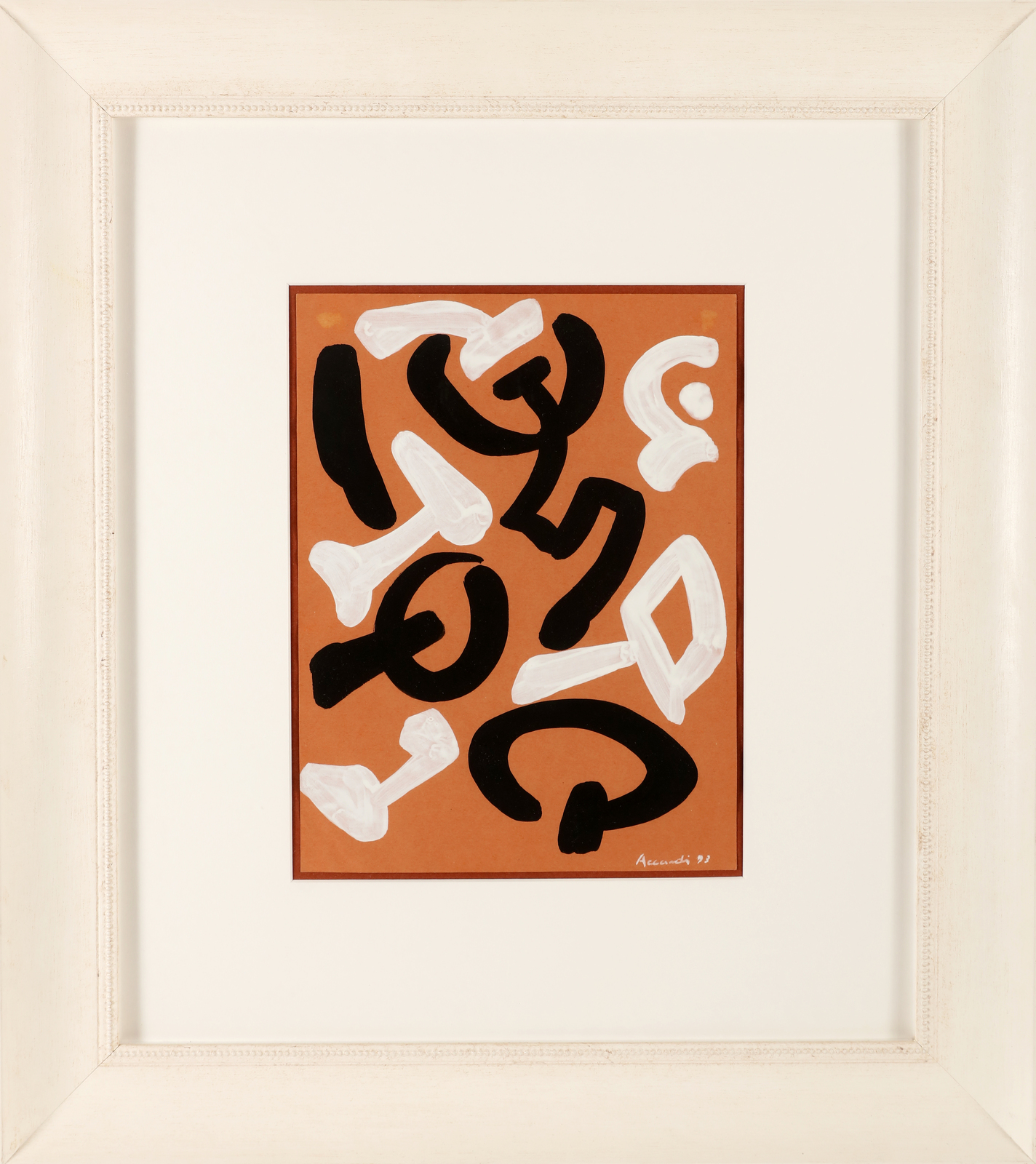 ACCARDI CARLA (1924 - 2014) Marrone bianco. 1993. Tempera su carta. Cm 24,00 x 32,00. Firma e anno in basso a destra. Al retro titolo, firma e anno. Autentica dell'artista su fotografia. Cornice presente