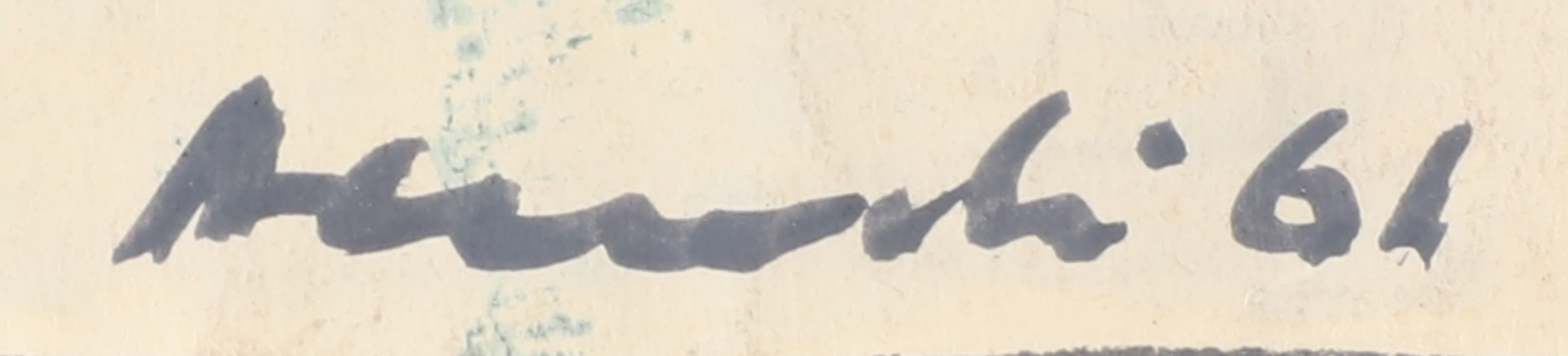 ACCARDI CARLA (1924 - 2014) Untitled. 1961. . Cm 25,00 x 17,00. Signature and year lower right. Artist's authenticty certificate on photo and Accardi - Sanfilippo Archive opinion. Defects.