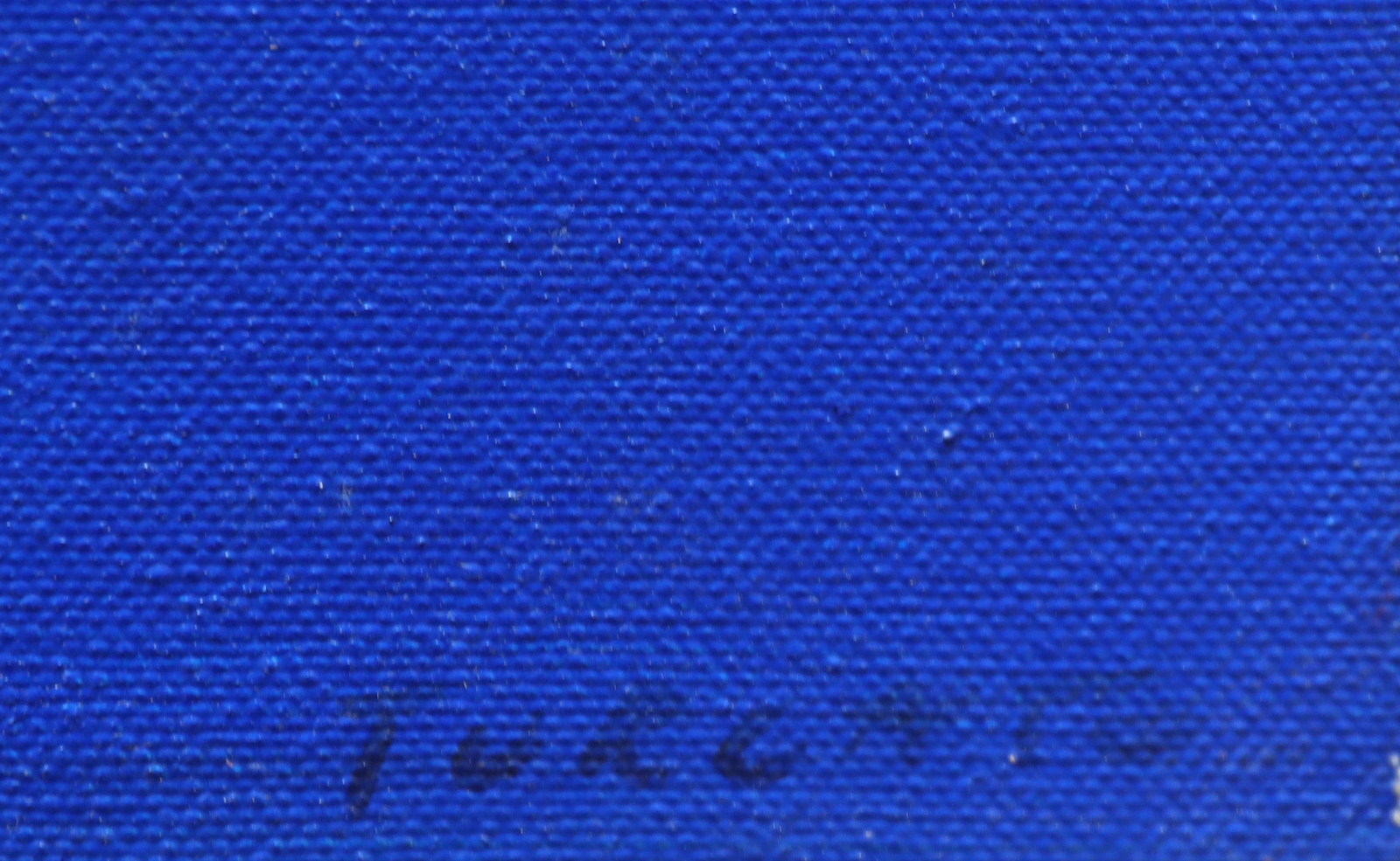 TURCATO GIULIO (1912 - 1995) L'Acropoli. Collage e olio su tela. Cm 70,00 x 50,00. Firma in basso a destra e al retro. Opera archiviata presso l'archivio Giulio Turcato, Roma, come da documentazione fotografica allegata all'opera e riportante il relativo numero d'inventario. Cornice presente